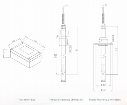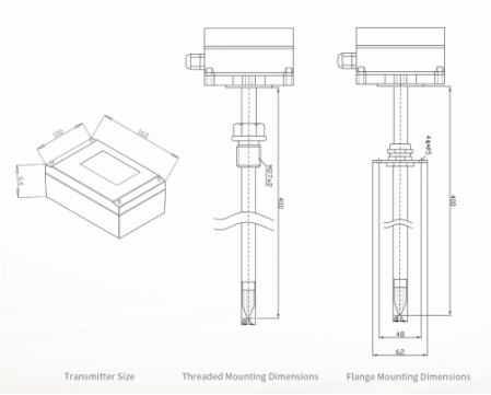 ![]() Stem length: 400mm standard, upto 800mm | ![]() Cable length: 1m standard, upto 3m. Probe: 150mm standard, 52mm and 87mm options. |